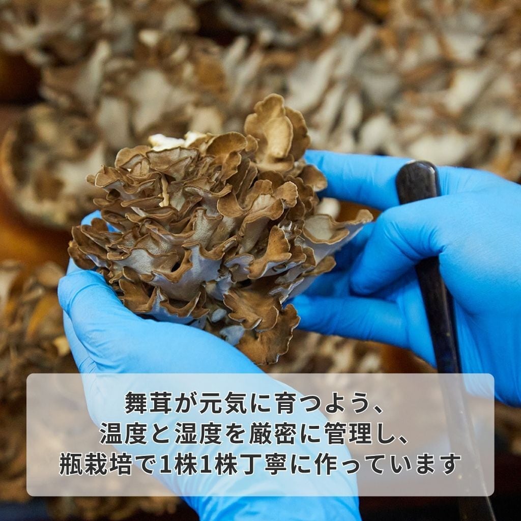 品種特性で一般的な舞茸よりも色が濃く、火を通しても歯ごたえがシャキっとしています。